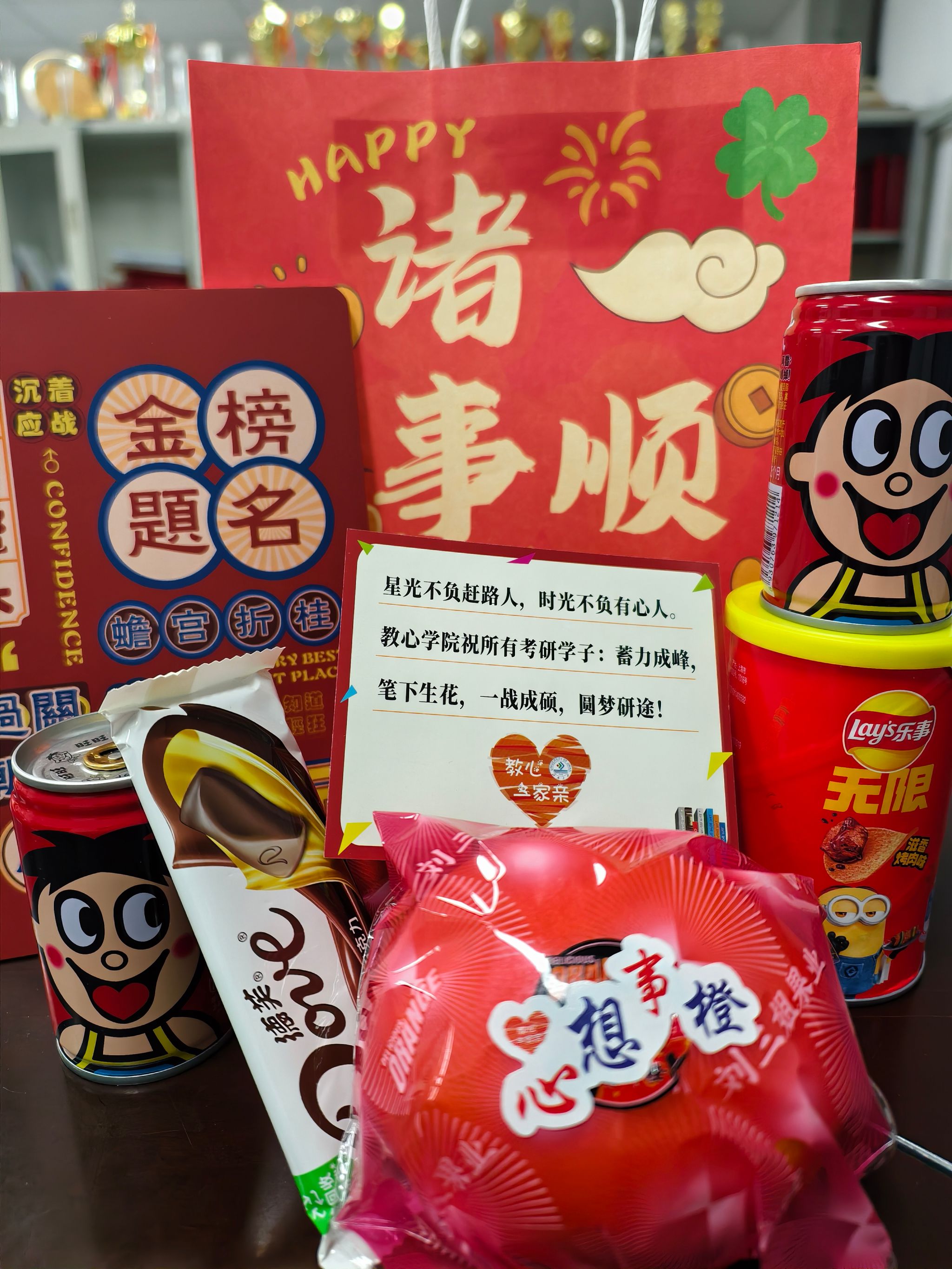 为每一位2026届考研学子精心准备了“考研加油礼包”。礼包内含寓意美好的各式礼品:印有“一战成硕”的祝福卡片、象征“心想事‘橙’”的橙子、寓意“旺气加持”的旺仔牛奶、代表“巧克难题”的德芙巧克力以及期盼“乐事将至”的乐事薯片。这份充满心意与巧思的礼包,让紧张备考的学子们深切感受到了色情视频