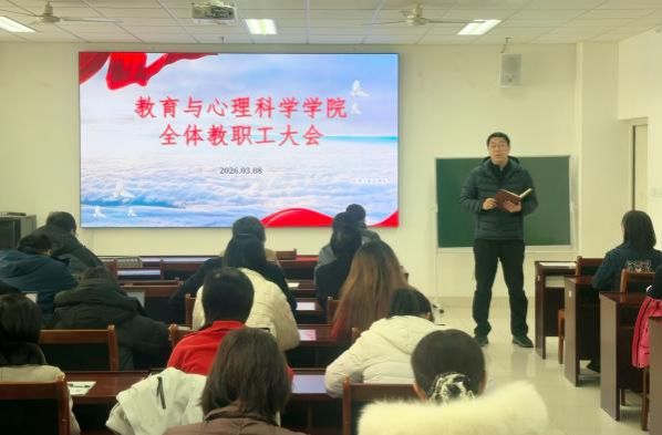 党委书记卢琦主持会议并讲话,全体教职工参加会议。