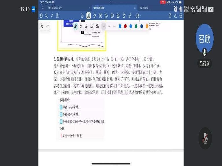 吕召欣分享政治冲刺借助思维导图,高效背诵肖四核心框架,浓缩资料强化关键词记忆。选择题采用“圈画关键词+排除绝对化表述”策略提升得分率,分析题严格遵循“总-分-总”结构作答。专业课秉持“抓大放小”原则,以“关键词+逻辑链”深化记忆,坚持全真模考训练答题节奏。英语每日背诵易错词与高频词汇,作文运用精简模板,考前持续保持阅读手感,冲刺阶段务必避免学习中断,确保学习连贯性。